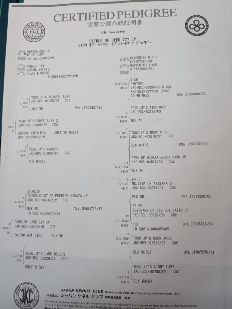 母犬:CITRUS OF UFER 727 JP