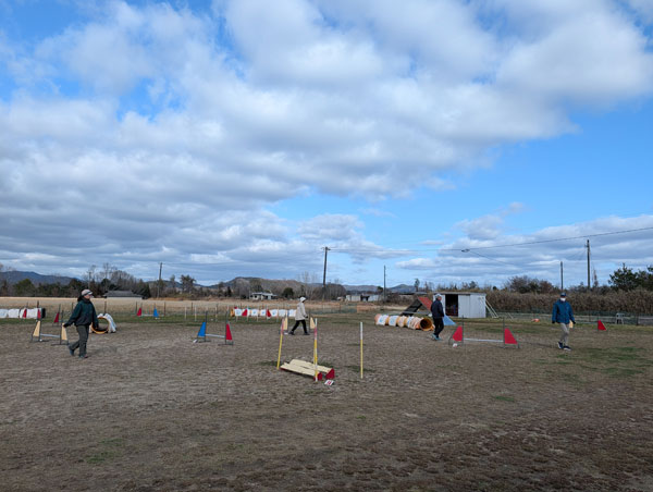 風が吹くと集中が切れやすい環境でしたが、どのペアもハンドラーとのコミュニケーションを大切にしながら、落ち着いて取り組めていました。