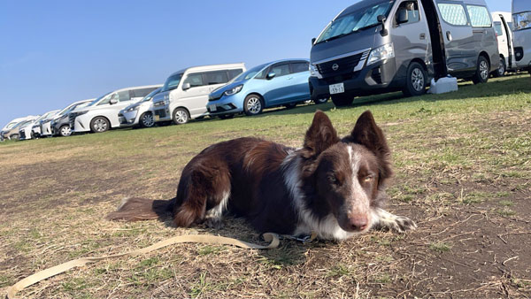 ボーダーコリーのバロンくん(1歳)は、今回は“慣らし訓練”。